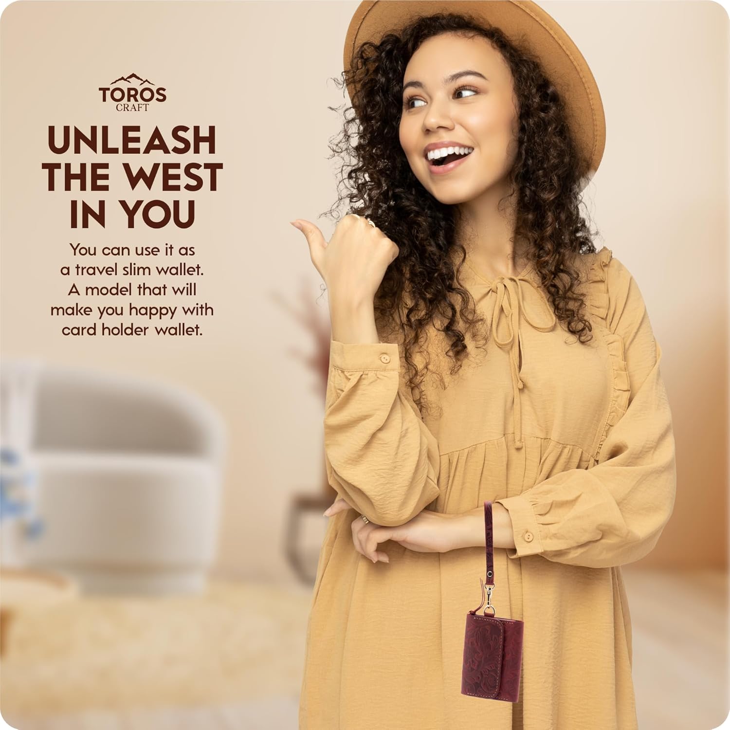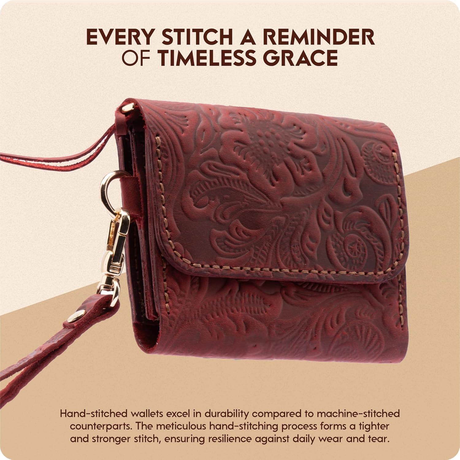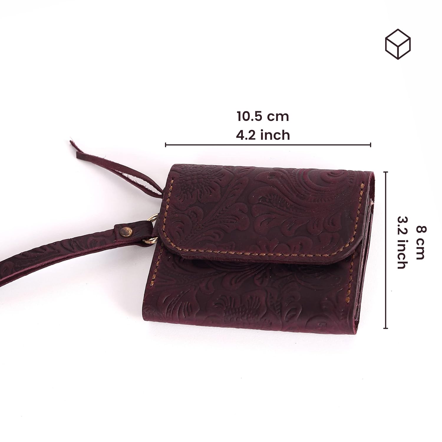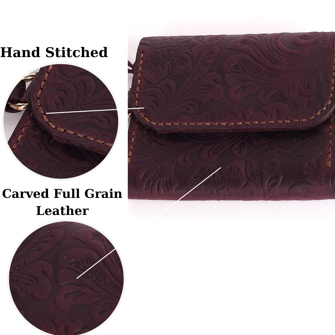 Handmade Western Floral Dark Brown Leather Small Credit Card Holder