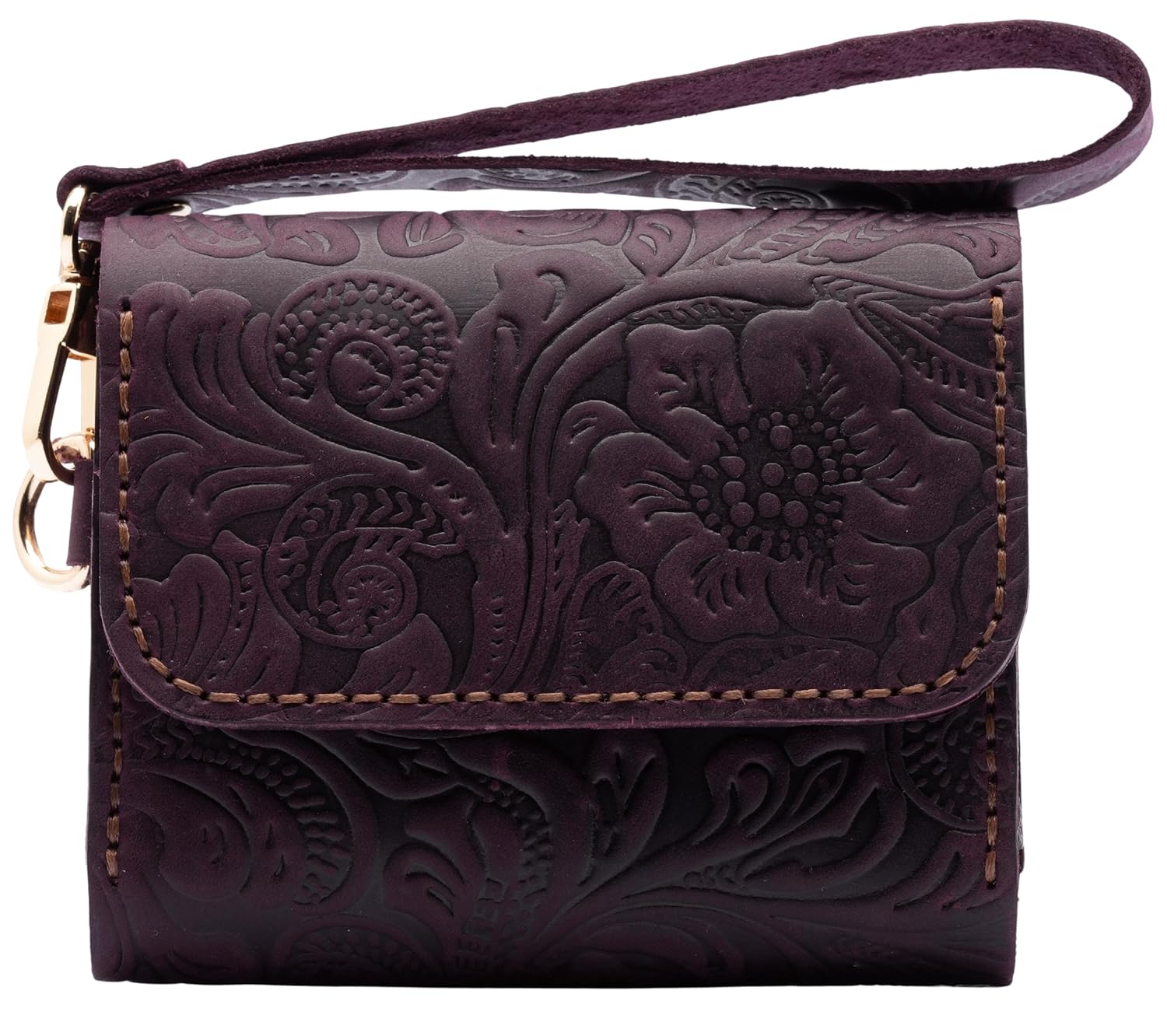 Handmade Western Floral Purple Leather Small Credit Card Holder